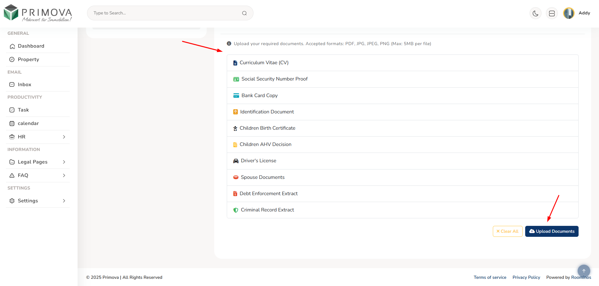 - Required Documents: Upload all mandatory documents for compliance