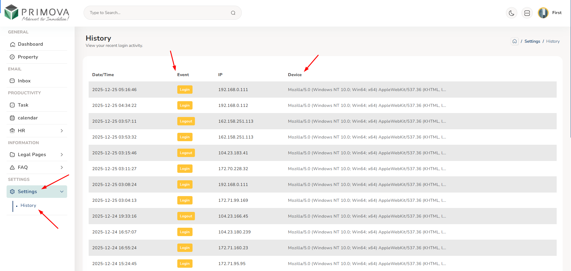 History - Check Login Logs