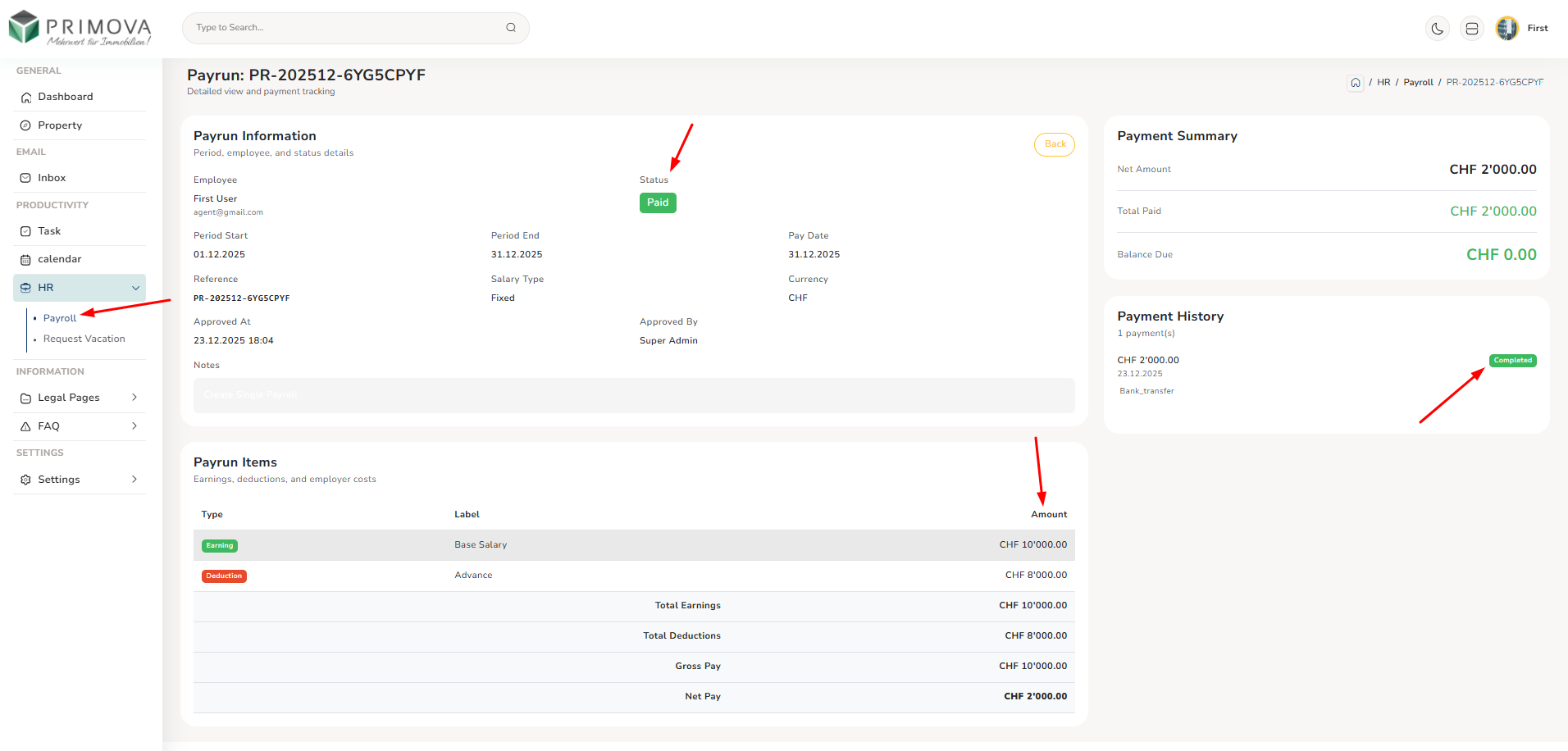 - Payroll: Check salary details and payment history