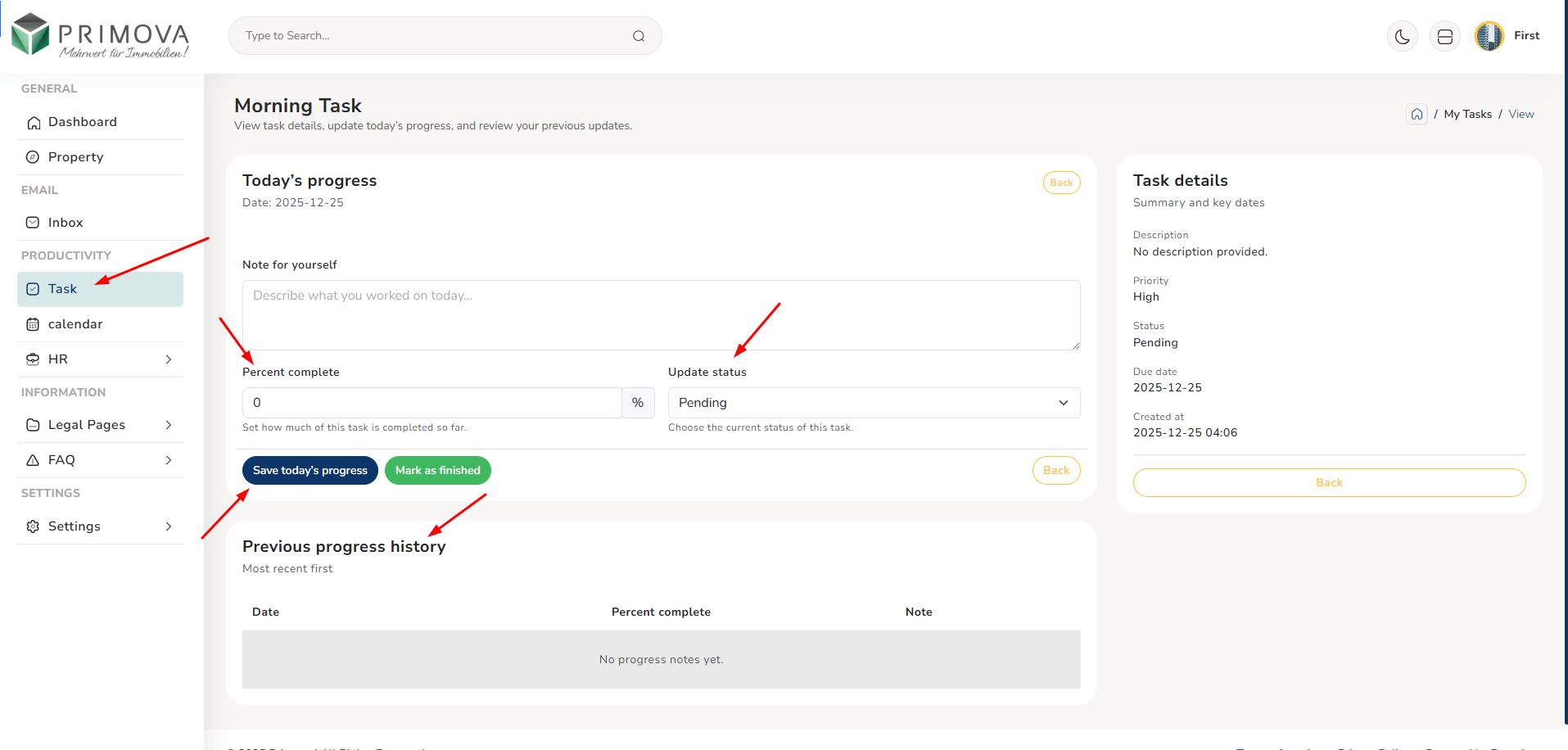 Welcome to the Primova Employee Panel - your comprehensive workspace designed specifically for Agents, Consultants, and Staff members. This panel provides you with all the tools you need to manage your daily tasks, view property listings, communicate with clients, track your work assignments, and manage your HR-related activities.