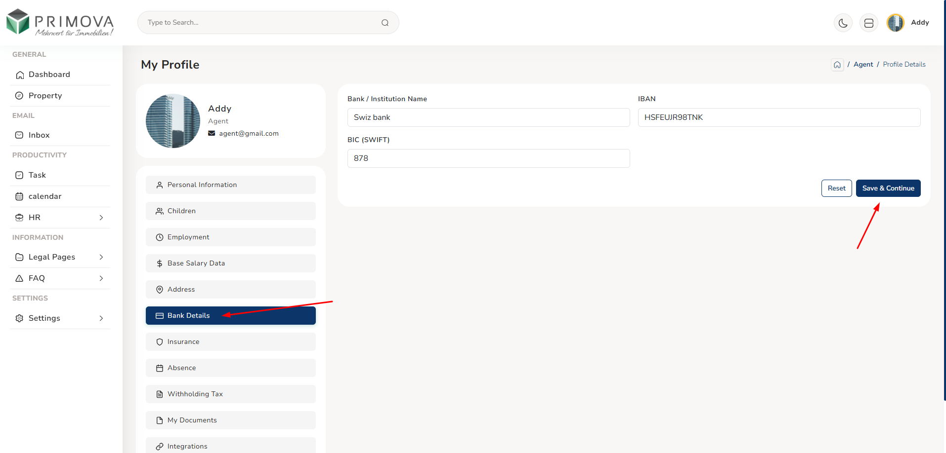 - Save & Continue: Always save changes before leaving section