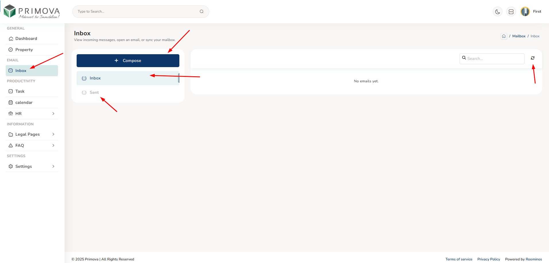 - Communication: Call property owners, send/receive emails, internal messaging