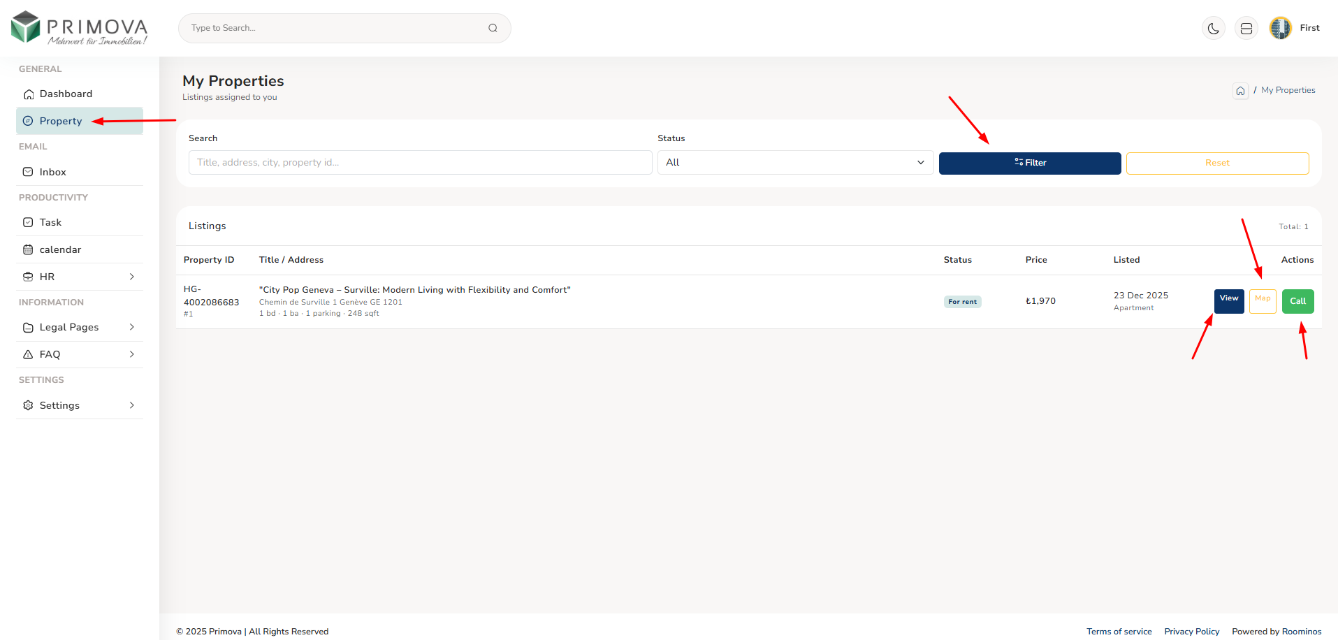 - Explore Property Listings: Navigate to Property section to view all available listings